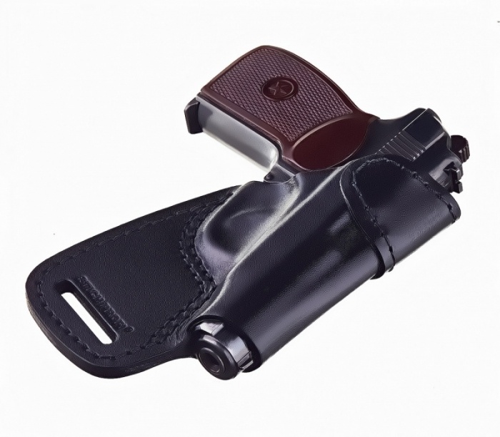 Кобура поясная открытая для ПМ, модель № 10, полугоризонтальная за спину (в район 5-6 часов) под правую руку.