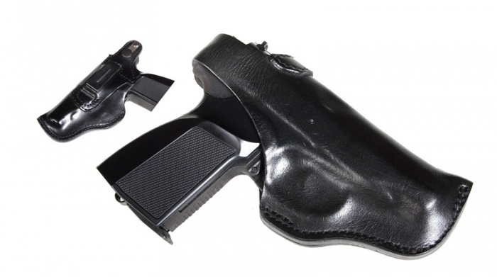 Поясная формованная кобура из натуральной кожи, со скобой, для ИЖ-71 и аналогичных.