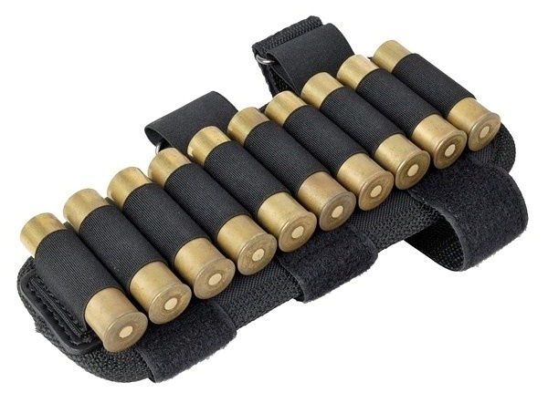 Патронташ предназначен для оперативной перезарядки оружия, размещается на предплечье и фиксируется тремя ремнями из капроновой стропы, которые регулируются за счет "липкой" ленты.