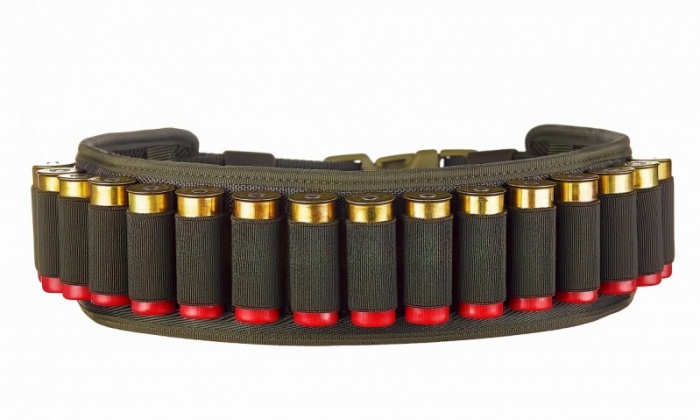 Карманы под патроны выполнены из плотной эластичной ленты пошитой гармошкой, что защищает патрон со всех сторон и обеспечивает хорошее удержание патронов 12 или 16 калибра в патронташе. Патроны слегка выступают над верхним краем патронташа, что позволяет быстро и легко достать их во время охоты.