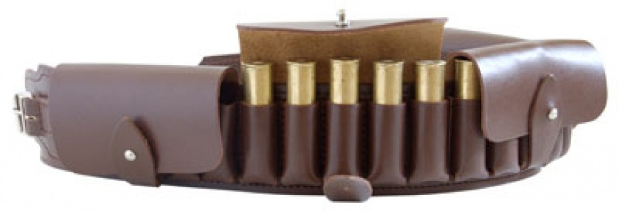 Патронташ выполнен из натуральной кожи и предназначен для переноски патронов для охотничьего оружия во время охоты. Патронташ имеет 24 кармана для патронов 12 калибра, защищенных 5 клапанами и регулируемый ремень. С обратной стороны патронташ продублирован вторым слоем кожи.