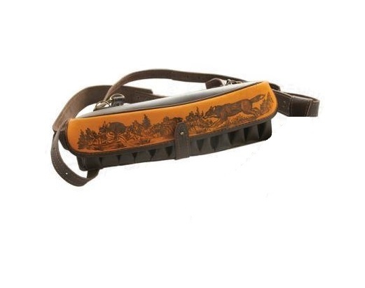 Патронташ охотничий двухрядный «№55» изготовленный из натуральной кожи предназначен под 12 калибр и вмещает в себя 24 патрона.