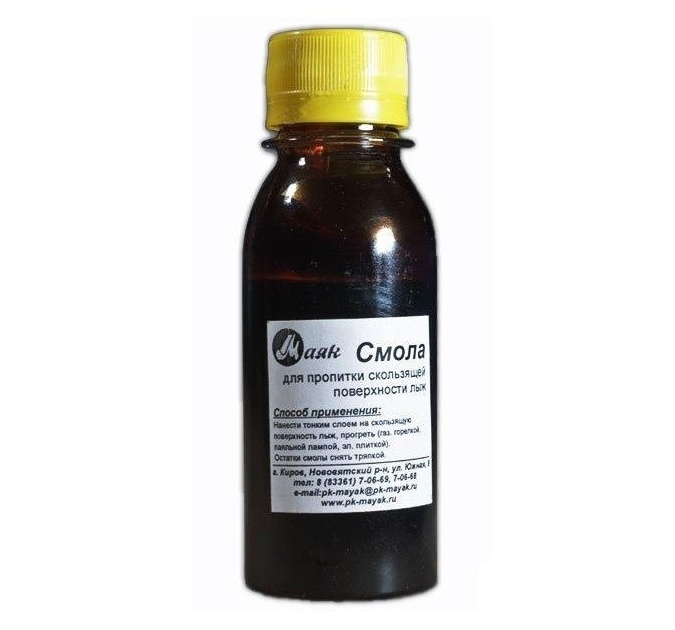Смола применяется для пропитки скользящей поверхности любых деревянных лыж: охотничьих, таежных, лесных, беговых, и др.