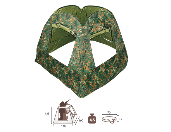 Маскирующее укрытие для охотников при выжидании зверя и птицы с автоматическим принципом быстрой сборки/разборки.