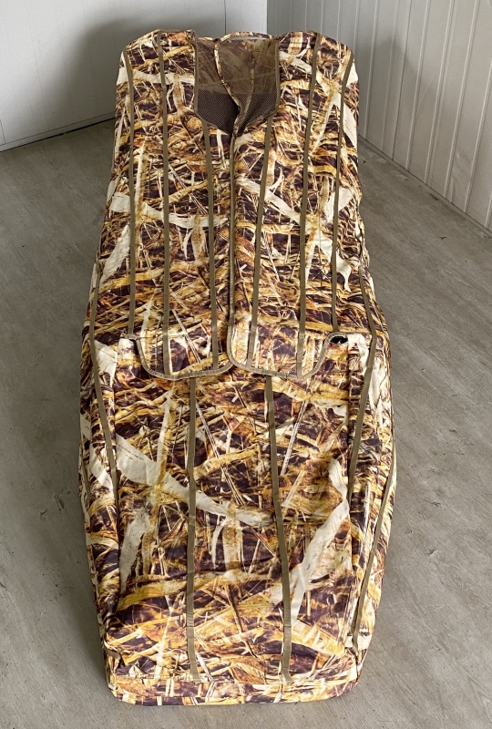 Относительно легкая конструкция с распашными створками. Данная засидка обеспечивает комфорт и удобство в полевых условиях. Рамная конструкция изготовлена из прочного алюминия и рассчитана на долгий срок службы. Благодаря плотной ткани 600D, засидка обеспечивает охотнику надежную защиту от неблагоприятных погодных условий. Пол выполнен из водонепроницаемой ткани 1800D. Мягкая спинка создает комфорт для длительного лежания. Имеются стропы для установки дополнительной маскировки из местной растительности. А рюкзачные лямки облегчат транспортировку.