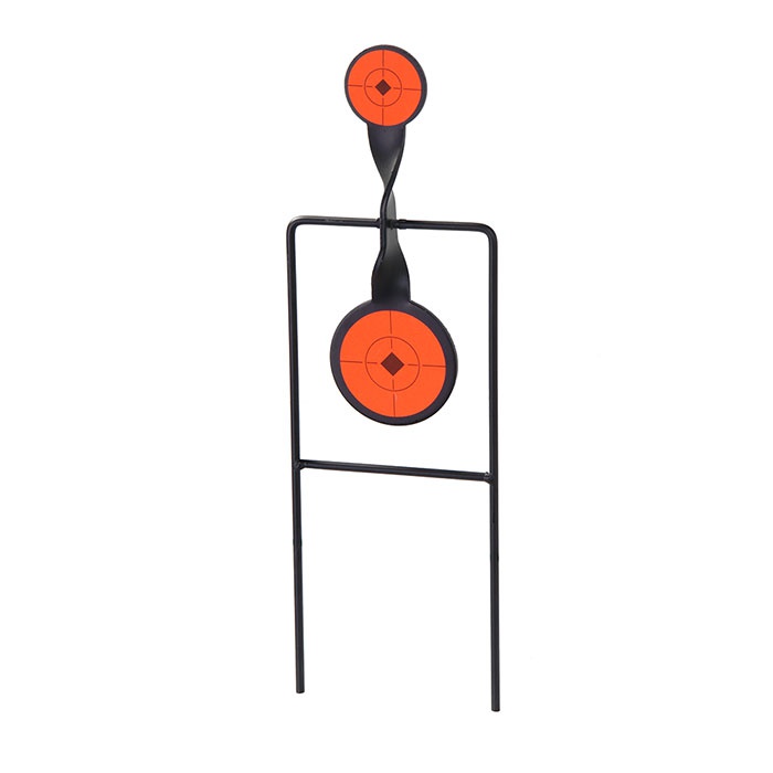 Мишень Duel 2 представляет собой металлическую рамку из стержня диаметром 6 мм с мишенями толщиной 5 мм (выдерживает удар свыше 25 Дж), которая втыкается в землю. Устройство возвращается в исходное положение после попадания пули, поэтому Вам не надо заниматься сменой мишеней. В центре каждого силуэта нанесен самоклеющийся стикер (наклейка) оранжевого цвета круглой формы. Стойкое антикоррозионное покрытие позволяет использовать мишень в неблагоприятных погодных условиях.