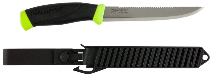 Hож с длинным клинком с зубчатым обухом для чистки рыбы. Нож имеет удобную, не скользящую в руках,пластиковую рукоятку. Лезвие изготовлено из холоднокатаной нержавеющей стали фирмы Sandvik. Длина лезвия 150 мм. Нож комплектуется пластиковыми ножнами.