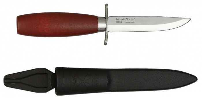 Классический нож с защитой для пальцев и клинком из углеродистой стали.