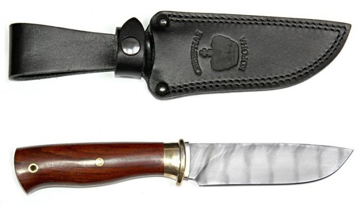 Еще одна модель из новой серии ножей из дамасской стали. Достойный нож из серьезных материалов. Дамасская сталь делает его настоящим помощником и в лесу, и на охоте. Допустимо использование как под дождем, так и непосредственно в воде. Африканское дерево кокобола, из которого выполнена рукоять, обеспечивает надежный хват в любых погодных условиях. Комплектуется кожаными ножнами.