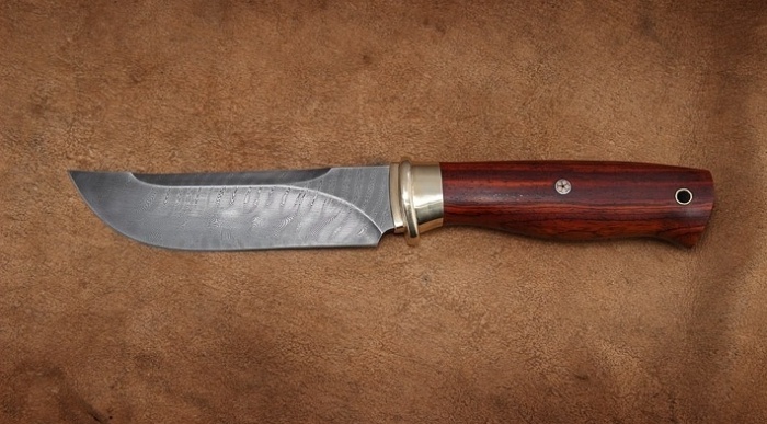 Нож сделан для настоящих охотников и профессиональных туристов. Дамасская сталь делает этот нож острым, позволяет снимать шкуру с животных с закрытыми глазами. Африканское дерево кокобола в рукояти сохраняет свои свойства в жару, холод, а также при высокой влажности. Комплектуется кожаными ножнами.