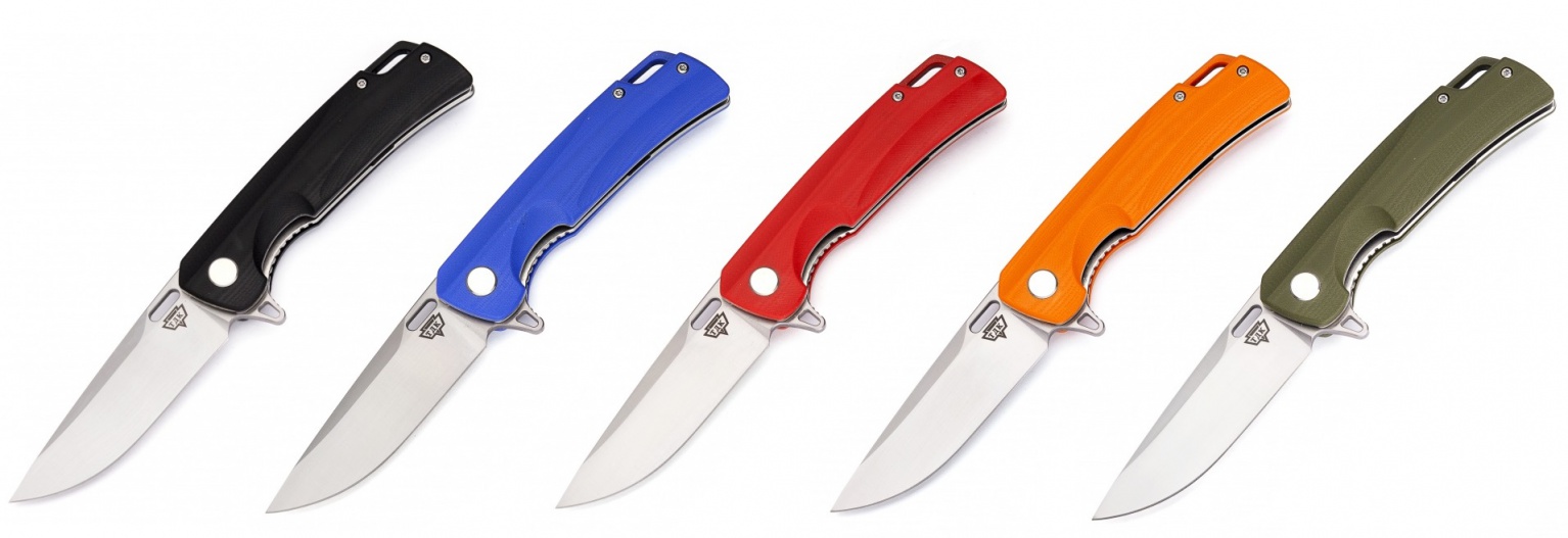 Клинок изготовлен из стали D2, с пятой, обработка поверхности клинка сатинированиее, однолезвейный, с двумя подшипниками для инерционного извлечения клинка.