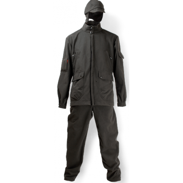 В комплект к костюму прилагается демисезонная охотничья кепка. Удлиненная куртка на разъемной молнии. Центральная молния закрыта ветрозащитной планкой. 7 внешних карманов на куртке. Рукава на манжетах. Воротник-стойка. Съемная повязка-выделитель на рукаве для безопасности на охоте. Низ куртки регулируется по объему.Штаны: 2 кармана. Пояс на резинке со шлевками под ремень. Ткань Windblock