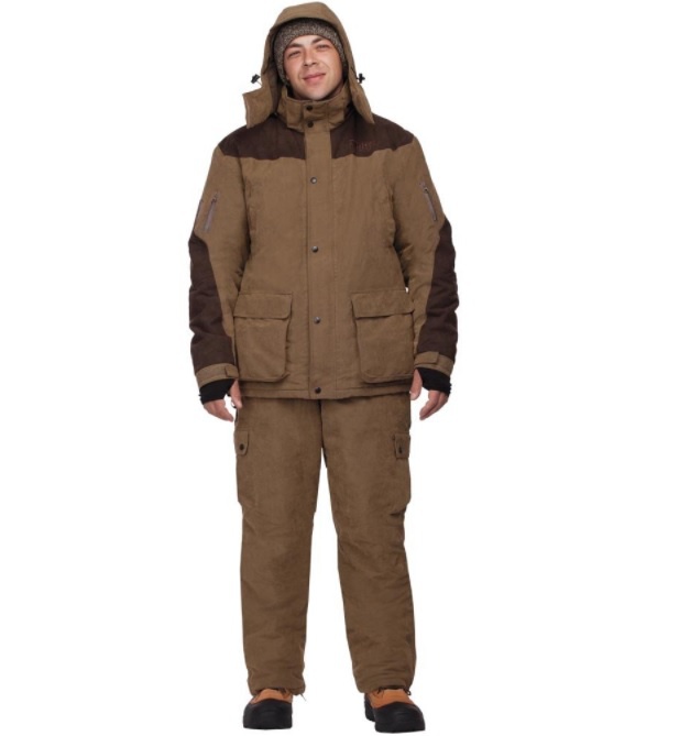 Благодаря анатомическому крою куртки и брюк костюм не стесняет движений. Нешуршащая ткань, накладка из износостойкой ткани на правом плече для лучшей прикладистости оружия, накладка на левом плече для переноски сумок, ягдташа и т. д. Два объемных кармана на куртке для дополнительного снаряжения, съемный патронташ, отделение на груди куртки для документов. Объемные карманы внутри куртки для документов или бинокля. Анатомический капюшон с возможностью регулировки. Утеплитель Termo MAX сбережет тепло в холода.