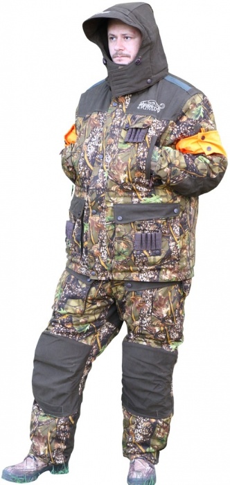 Зимний костюм оборудован 3 вшитыми патронташами: 1 нагрудный на 4 патрона и в нижней части куртки 2 по 5 патронов.