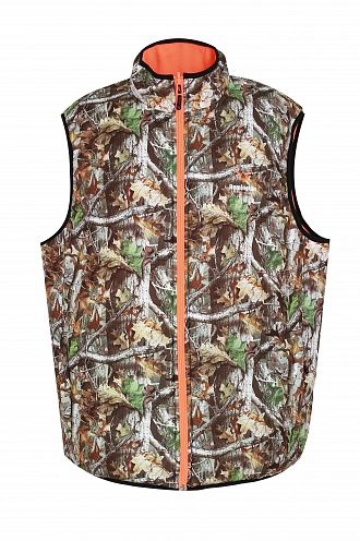 Двусторонний жилет Remington Double Hunting Vest подойдет для использования практически в любое время года. Одна сторона жилета имеет камуфляжный принт, в то время как вторая окутана ярко-оранжевым цветом. Жилет идеально подходит для охоты в загоне. Прямой крой не сковывает движения. Материал мягок на ощупь, не создает лишнего шума и хорошо тянется, благодаря чему жилет сядет на любую фигуру как влитой. На каждой из сторон предусмотрены по два кармана на молнии.