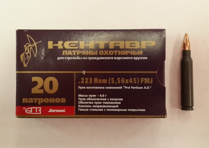 Патрон 223 Rem 5,56x45 КЕНТАВР ОБ (4,0гр.) полимер БПЗ