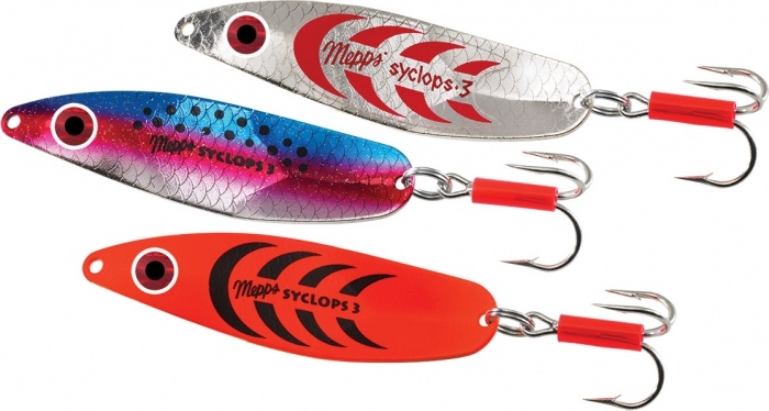 MEPPS SYCLOPS — одна из лучших колеблющихся блесен в мире, имеющая превосходно отработанную форму. Старинные прототипы, схожие с этой блесной, в наше время практически не сохранились. SYCLOPS унаследовал от них двойной прогиб в горизонтальной проекции, обеспечивающий при проводке максимальное сходство с движениями живой рыбы.