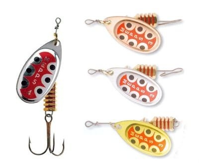 AGLIA TW оснащена лепестками с окраской, подражающей «божьей коровке». Угол отклонения лепестка 60?. Большое лобовое сопротивление. Устойчиво «работает» даже при самой минимальной скорости движения. Винтовая застежка TW . Позволяет не только смену тройников, но и создание двухлепестковых блесен - тандемов. Приманка для мягкой неторопливой проводки.