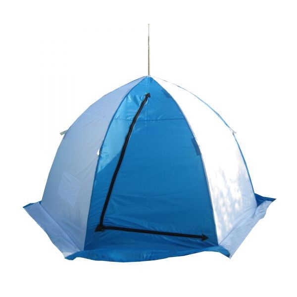 Шестилучевой каркас, основание палатки – гексагон. Вход из двух молний 8, бегунки двухсторонние. Форточка – дополнительный бегунок на входе. Внутри - один карман для снастей, усилители на шарнирах. Снаружи - пороги, шесть усиленных оттяжек. Свободный чехол из технического капрона.