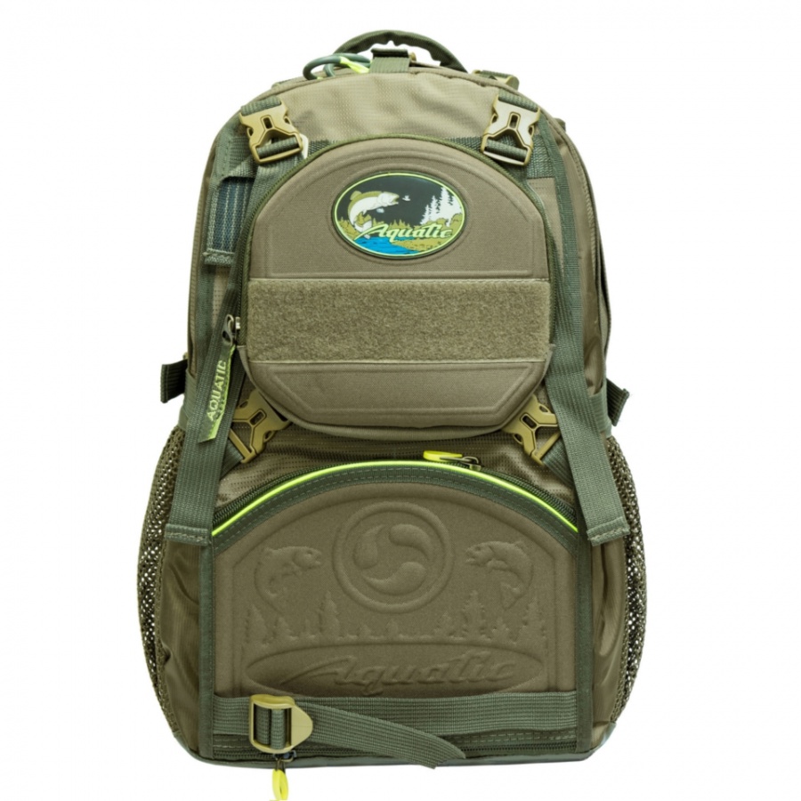 Наверное самый технологичный рюкзак Aquatic объёмом 35 литров состоит из трёх изолированных основных отделений. Специальная конструкция утяжки даёт возможность использовать рюкзак с различной степенью наполненности, а также позволяет закрепить на груди рыболова верхний отдельный карман-сумку, что дает возможность иметь под рукой самое необходимое не снимая рюкзак. На рюкзаке возможно закрепить очень габаритные вещи, например тубус, ружье и многое другое.