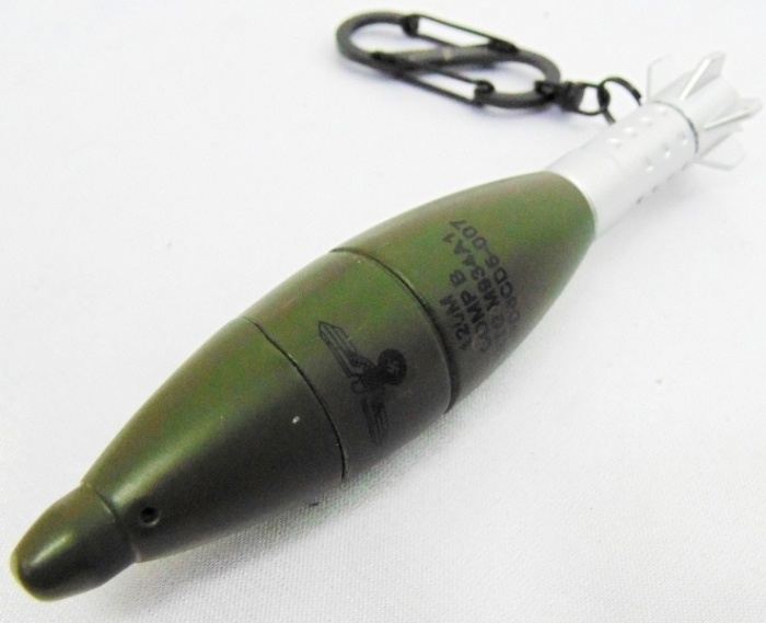 Кремневая газовая зажигалка, выполненная в виде 120 мм снаряда американского армейского миномета.