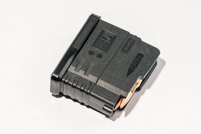 Магазин на 5 патронов для Вепрь 308 - изделие, отличающееся небольшой массой и эргономичным дизайном. Актуален на загонных охотах, где утвержденными правилами запрещено емкостное превышение 5 патронов в магазине.
